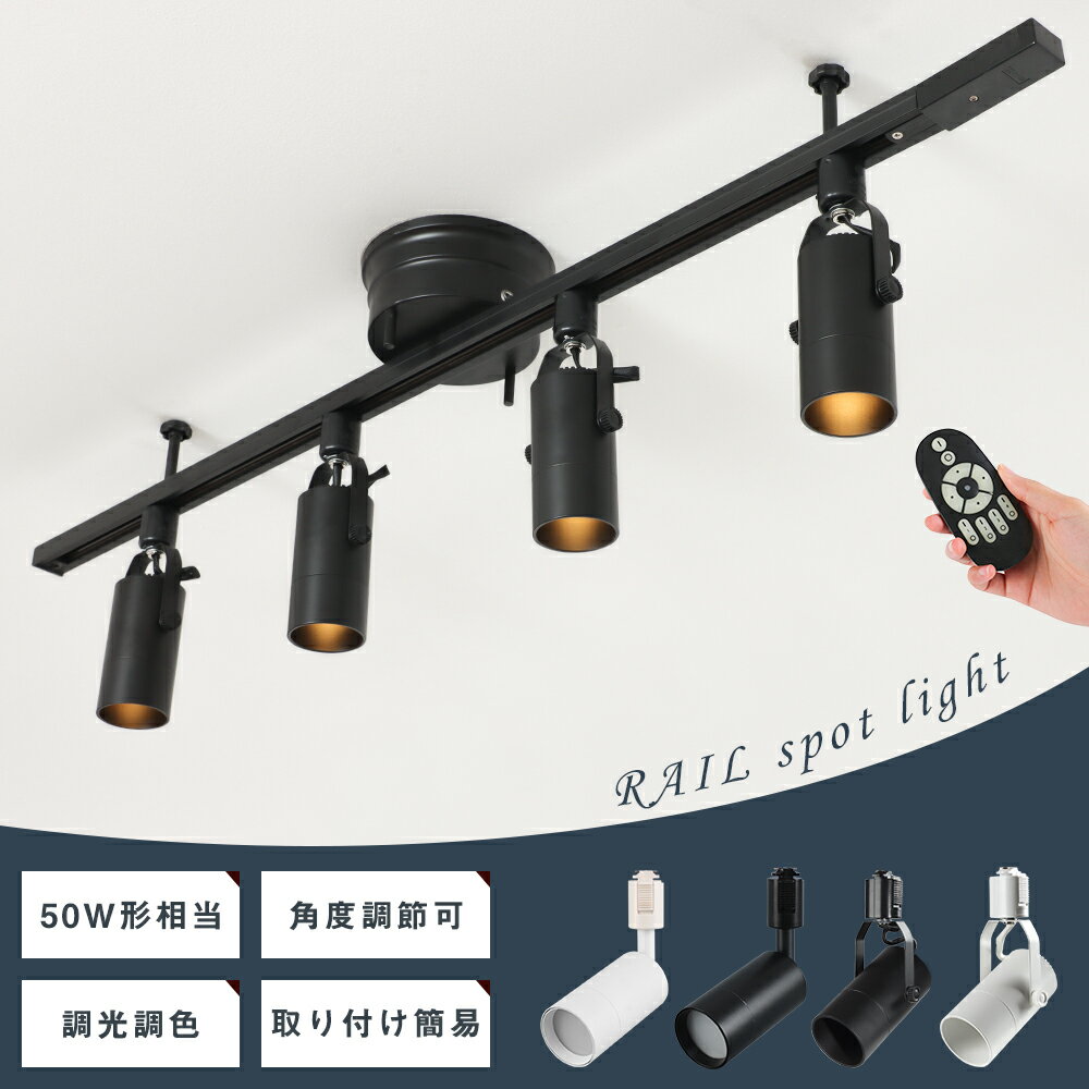 \5%OFF券進呈!+P3/シーリングライト 4灯 50W相当 調光調色 6畳 8畳 天井照明 間接照明 配線ダクトレール スポットライト ライティングレール レールライト リモコン操作 寝室 食卓 角度自由 照明器具 おしゃれ照明 レール 照明【2タイプ・1M/1.5M】