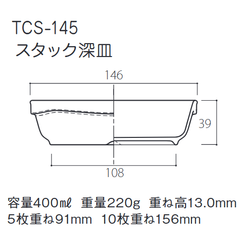 強化磁器 スタック深皿 直径146mm H39mm 400cc トップセラム [TCS-145] キッズメイト 業務用 こども用食器 子供 子ども 保育園 幼稚園 給食 14.6cm 丸皿 主菜 補食 スタッキング 積み重ね可