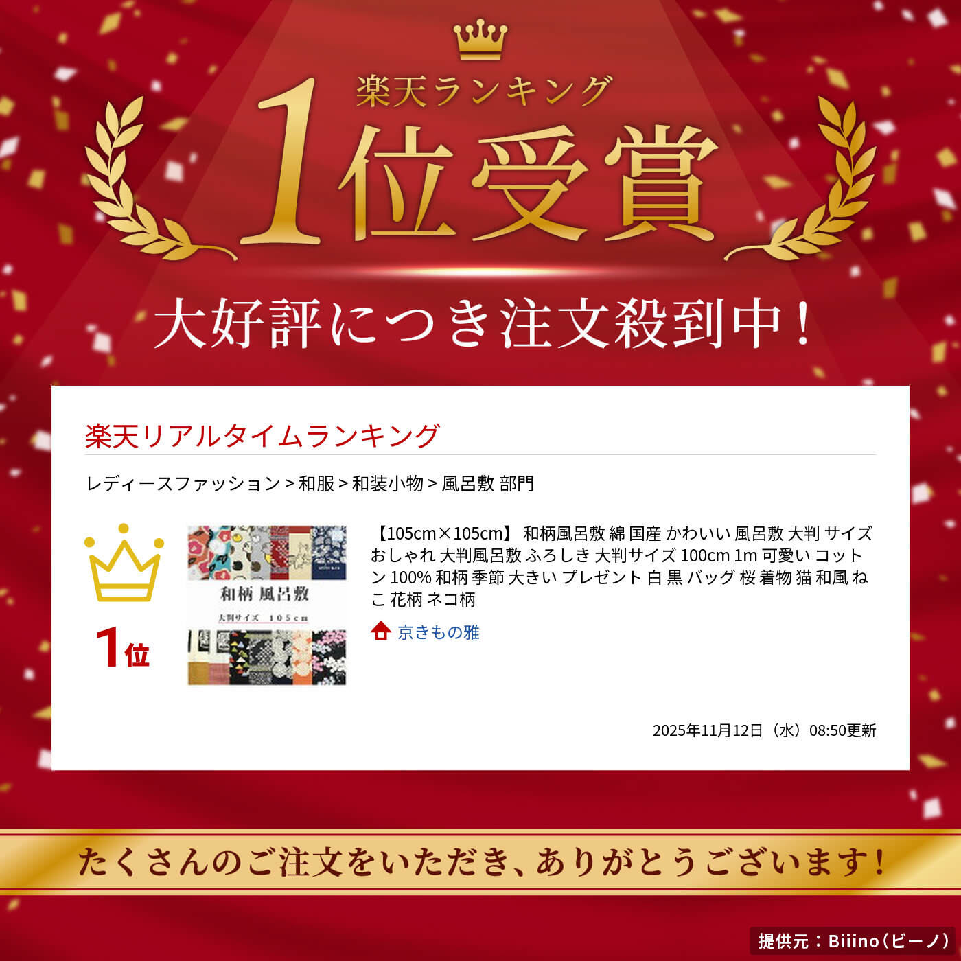 【105cm×105cm】 和柄風呂敷 綿 国産 かわいい 風呂敷 大判 サイズ おしゃれ 大判風呂敷 ふろしき 大判サイズ 100cm 1m 可愛い コットン 100% 和柄 季節 大きい プレゼント 白 黒 バッグ 桜 着物 猫 和風 ねこ 花柄 ネコ柄