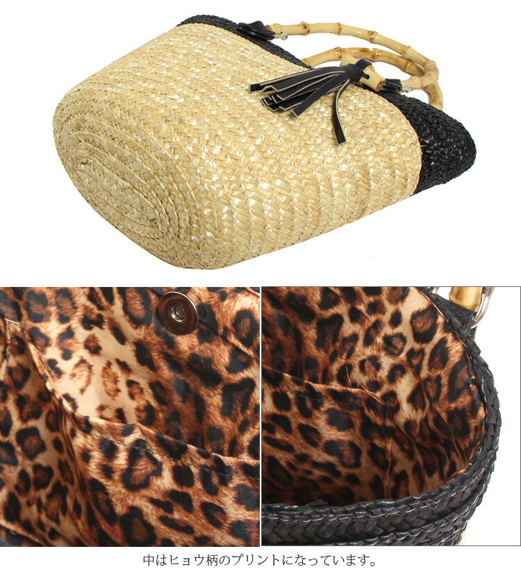 かごバッグ 浴衣 バッグ サマーバッグ 夏 バッグ ヒョウ柄 トート おしゃれ 浴衣 大人かわいい カゴバッグ 軽い 軽量 カジュアル お出かけ ナチュラル タッセル付き 56352