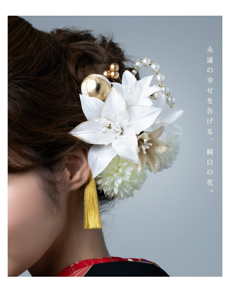 髪飾り 成人式 振袖 卒業式 袴 結婚式 パーティー 着物 浴衣 和装 ヘアアクセ Uピン ヘアアクセサリー 【髪飾り 袴 着物】【髪かざり 振袖】 白 ホワイト 日本製 簪 かみかざり 13点セット 百合 Arenca マドンナリリー ヘッドドレス e272