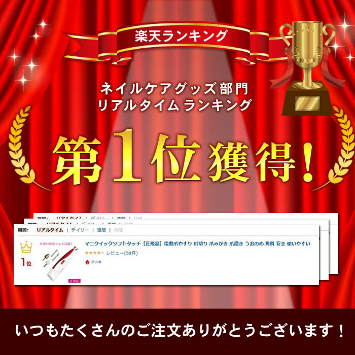 本体サイズ 約14×3.5×2.5cm(アタッチメント含まず) 本体重量 約70g(アタッチメント・電池含まず) 電源 単三乾電池×2本(別売) 付属品 アタッチメント5種、ビニールケース、 取扱説明書兼保証書 製造国 本体・ポーチ(中国製)、組立・出荷(イタリア) ※本品は治療を目的とした医療用具ではありませんので、傷のあるところには絶対にご使用にならないでください ※本品は皮膚が乾いた状態でご使用ください ※一箇所に固定したまま処理しますと、摩擦熱でやけどをする恐れがありますので、処理範囲を動かしながら少しずつ処理してください。 ※お子様だけで使用されると危険ですので、お子様の手の届かないところに保管してください。 ※削った爪や角質が粉になって落ちるので、新聞紙などの上での使用をおすすめします ※修理・交換の際にかかる送料はお客様負担となります。 【関連ワード】ブラックフライデー 2025 食品 食べ物 いつ ブラック フライデー クーポン クーポン獲得 クーポン対象商品 5のつく日 5の付く日 5の日 5のつく日エントリー ページ 0のつく日 0の付く日 0のひ 楽天 キャンペーン キャンペーンにエントリーする 39ショップ おかいものマラソン お買い物マラソン 11月 25年11月 期間 1000円 食品 いつ 日程 買い回り 買い回りマラソン 買いまわり 1000円 1000えん ポイント利用 いつまで? かいまわり 買い周り 送料込み 3年保証 保証書 スイス まにくいっく マニクイック ソフトタッチ パーフェクトソフトタッチ 洗える 水洗い 煮沸消毒 衛生 衛生的 つめ ツメ 爪 ネイル 電動爪みがき 電動爪切り 足爪 足の爪 手の爪 電動つめきり ネイルケアセット ネイルケア 爪ケア 爪削り 人間用 ネイルサロン 老人ホーム 介護施設 病院 クリニック 甘皮 魚の目 タコ たこ 巻爪 変形爪 二枚爪 深爪 女性 男性 子供 赤ちゃん 老人 お年寄り 父の日 父の日 敬老の日 出産祝い ギフト キフト プレゼント 贈り物美容・介護・医療等、幅広い分野で使われている手足のケアセット(電動爪やすり)です。 角質・魚の目・タコ・巻き爪・変形爪・二枚爪など、爪のお悩みのケアがこれ1つで簡単にできます。 ※アタッチメント5つは最初から付属していますが、アタッチメントだけでも販売しております ※実店舗と在庫を共有しておりますので、ご注文いただいた時点で欠品となっている場合がございます。 そのためご指定日に商品をお届けできない場合もございます。あらかじめご了承ください。