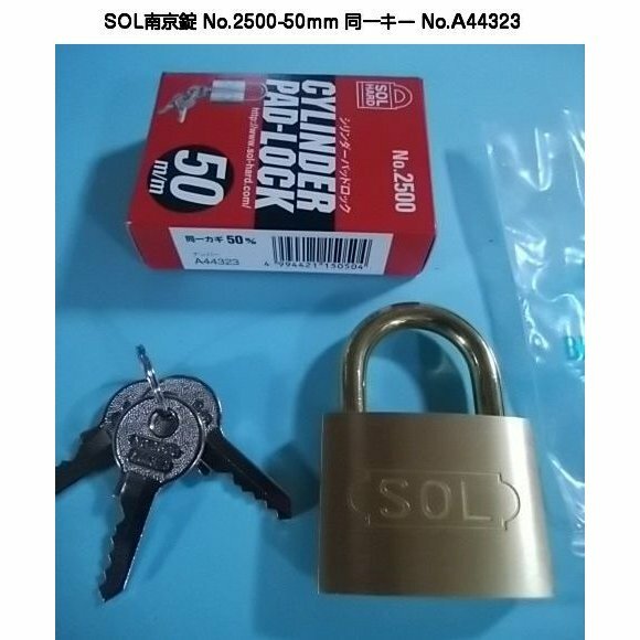 SOL(ソール)シリンダー南京錠 No.2500-50mm 同一キー No.A44323【メール便発送】