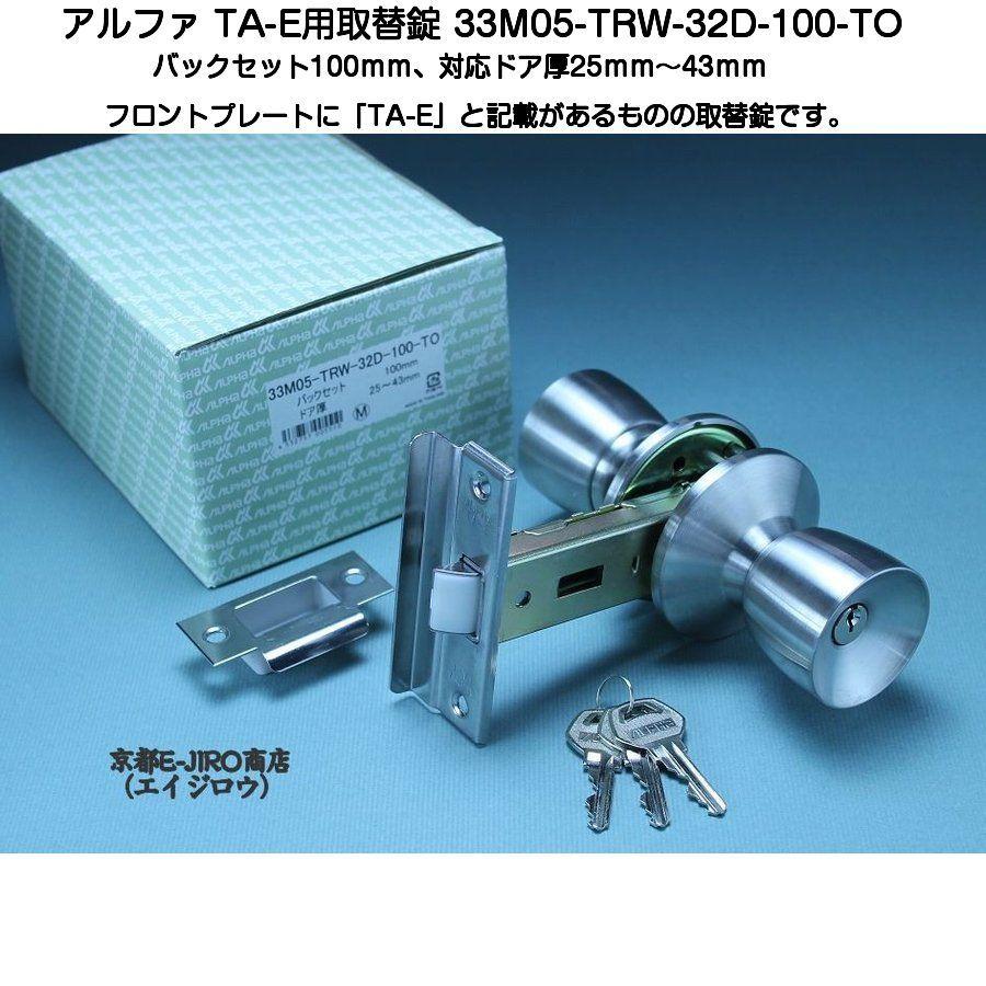 アルファ 33M05-TRW-32D-100-TO アルファミリオンロック TA‐E用取替 ピンシリンダー キー3本付 バックセット100mm 細框用