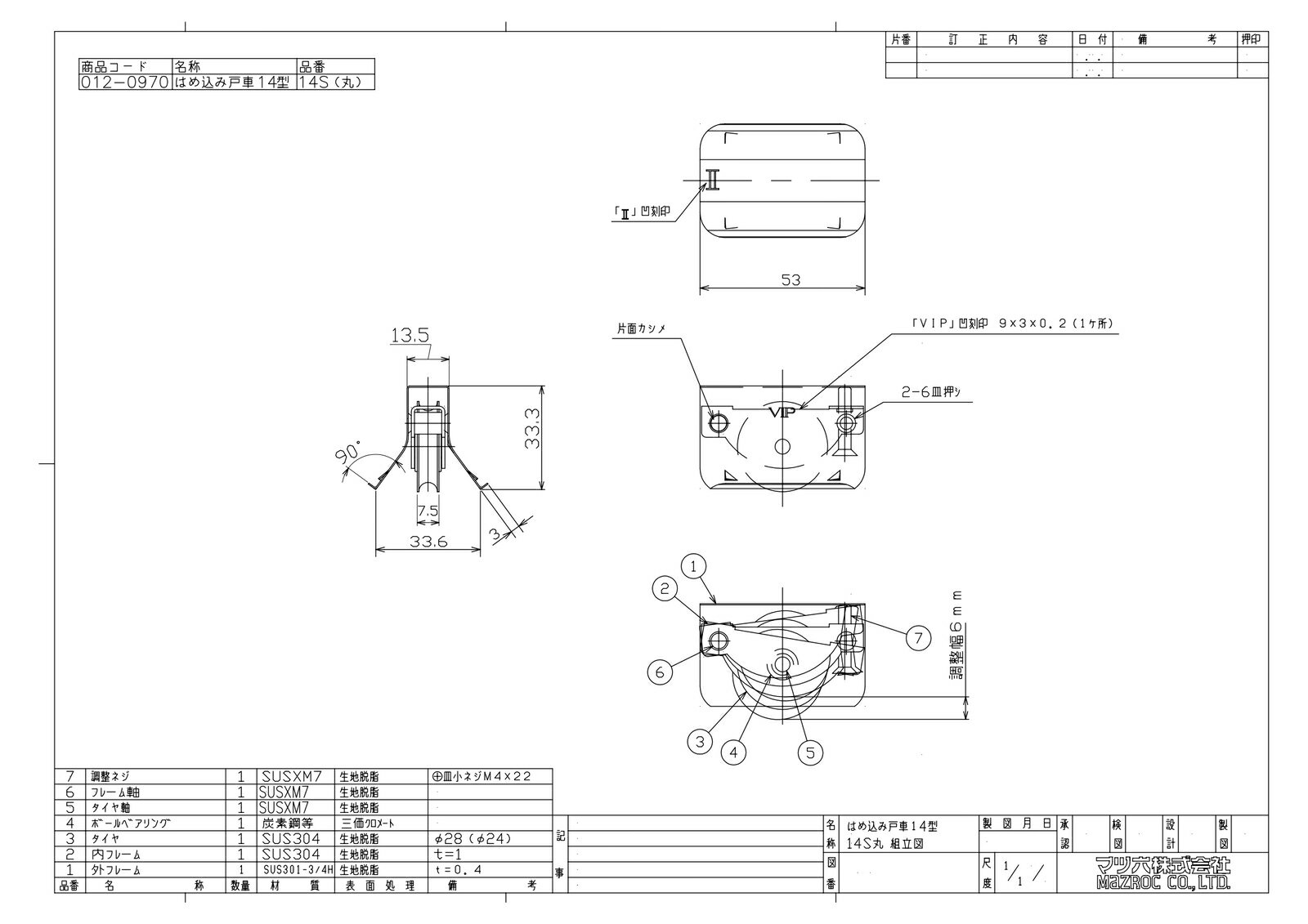 マツ六(VIP)はめ込戸車14型 14S丸 ステンレス車 平行框タイプ 適合範囲:内幅14〜24mm、深さ36mm以上(中・重量用)