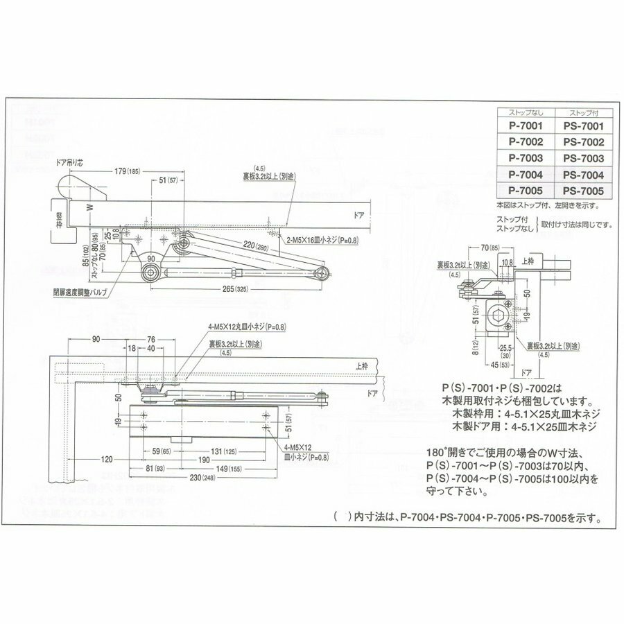 ニュースター ドアクローザ PS-7003 シルバー(N-01)鋼製ドア用ドアクローザー パラレル型 ストップ付 ドアチェック ドア重量45〜65以下