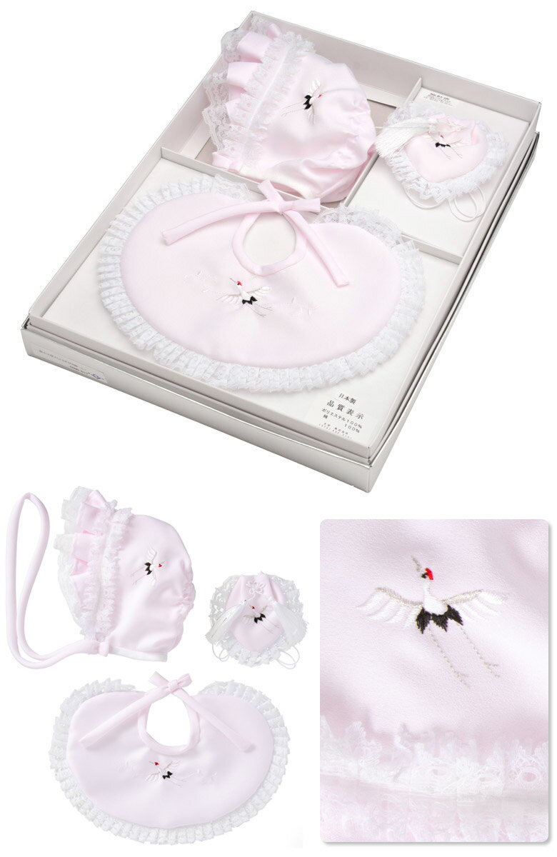 お宮参り 小物セット よだれかけ 帽子 お守り袋 鶴 刺繍 ピンク 洋フード帽 スタイ【ポイント5倍 期間11/20 20:00〜11/27 01:59】