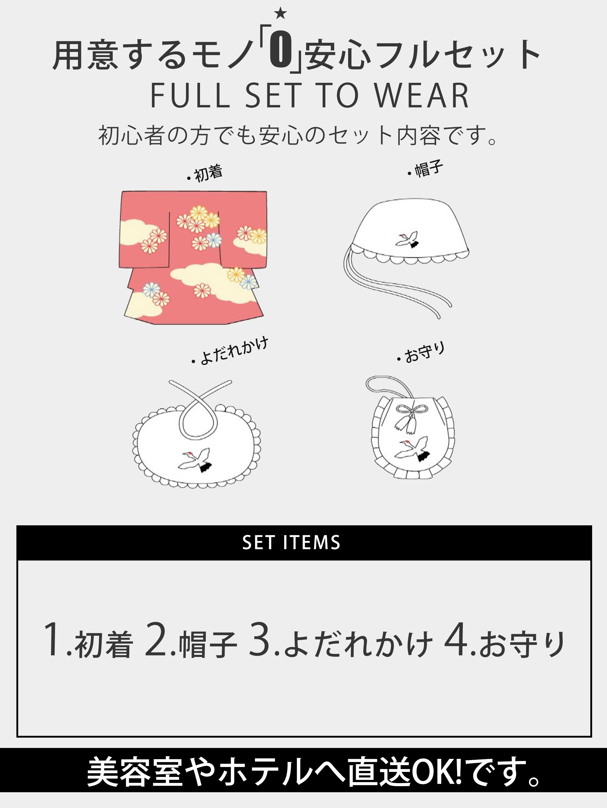 【レンタル】女児 産着 お宮参り 着物 帽子 よだれかけ セット【女の子 貸衣装 和服 祝い着 初着 産着 往復送料無料】鮮やか 白 ホワイト 古典