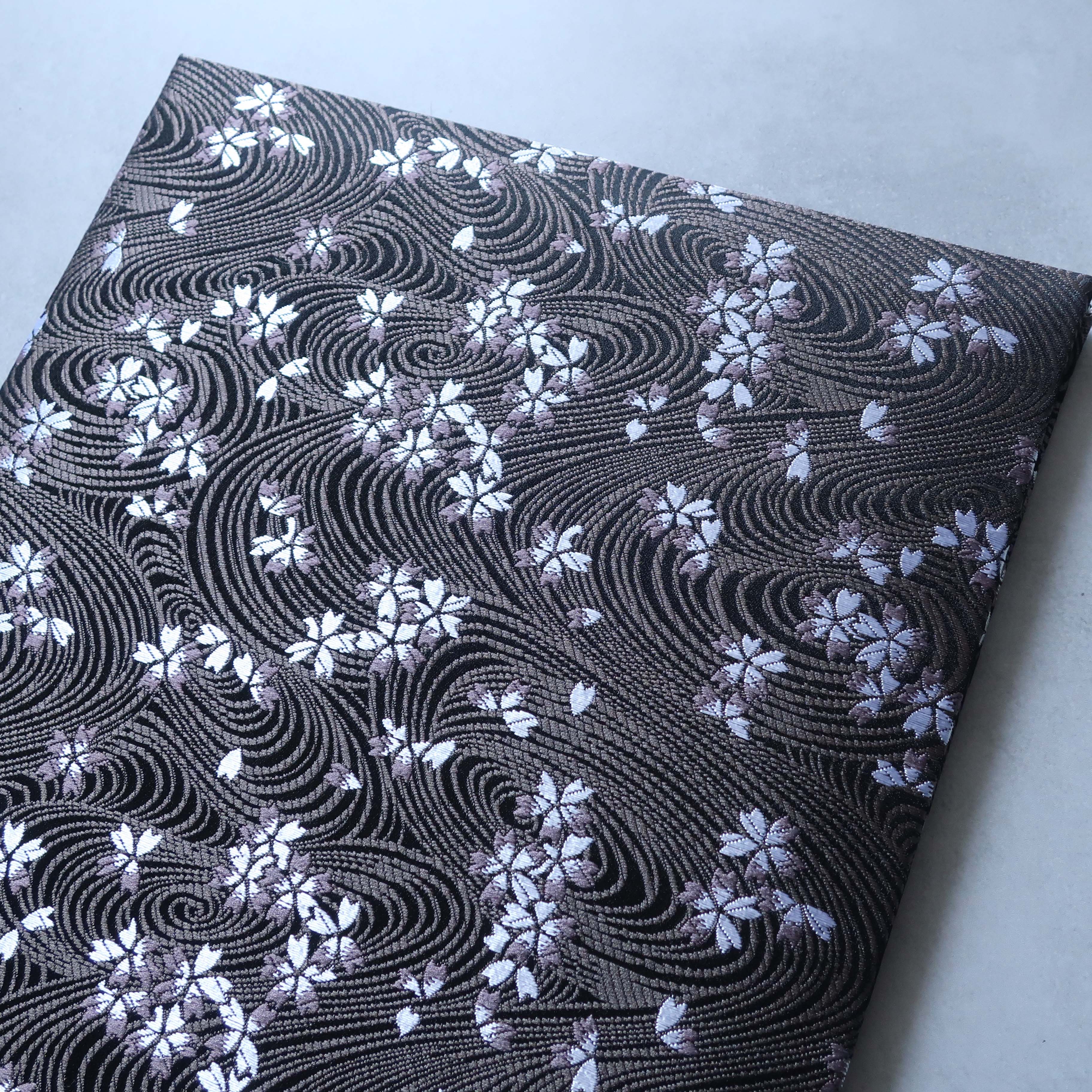 A4用 流水桜 黒 西陣織布表紙 1枚収納用 内白ツヤ布 パット有 賞状ファイル 証書ホルダー