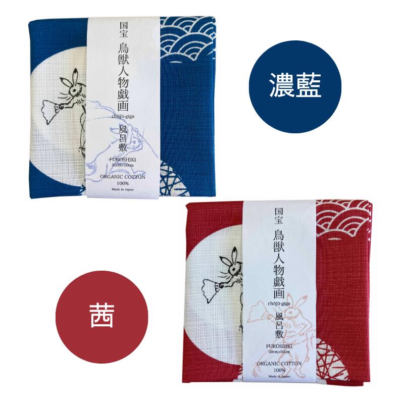 鳥獣戯画グッズ 風呂敷 オーガニックコットン 50cm 鳥獣戯画 全2色 日本製 綿100% 包み ラッピング 着物 持ち運び ギフト 贈り物 プレゼント 京都 高山寺 公式認定 うさぎ 兎 カエル 蛙 ねこ 猫 ミュージアム 美術 アート かわいい 上品 オーガニックコットン風呂敷 鳥獣戯画 2色 50cm×50cm 贈り物のラッピングやエコバッグにも最適 ◆オーガニックコットン小風呂敷 50cm 〈国宝 鳥獣戯画〉(全2色)◆ 平安時代 高山寺蔵 大人気商品、鳥獣戯画の小風呂敷がリニューアル! サイズはそのままに、環境負荷の少ないオーガニックコットン素材を使用しました。 丸を基調とした柔らかなイメージへデザインを一新。使いながら画面いっぱいに駆け回る鳥獣たちの愛らしい姿を楽しめます。 2