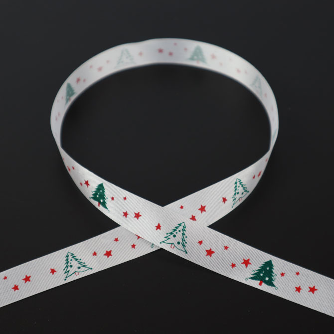 クリスマスリボン-3(メリークリスマスホワイト/ツリー柄)約2m