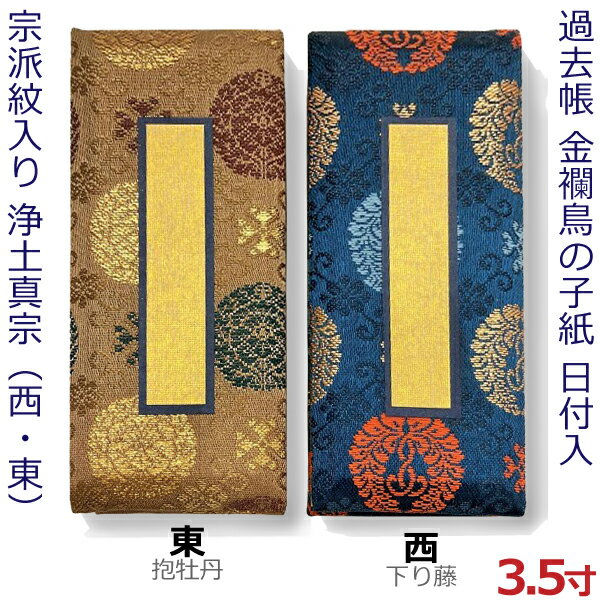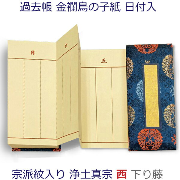 【宗派紋入り過去帳】 浄土真宗(西紋)金襴鳥の子紙 日付入 3.5寸