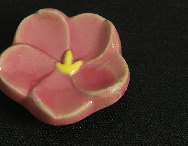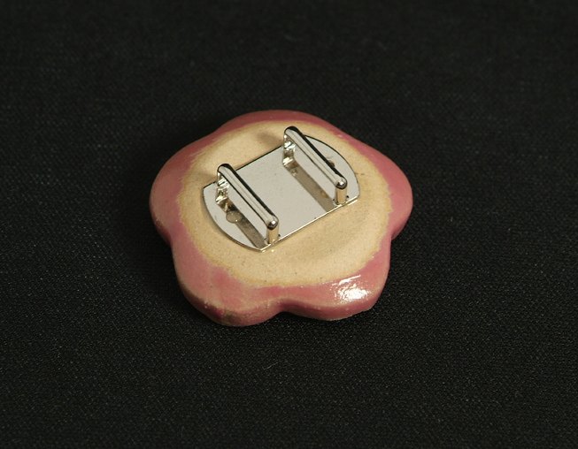 瀬戸赤津焼帯留め飾り 華畑シリーズ 瀬戸物 陶器 梅 濃ピンク 日本製 通常の帯〆でも使用可能な幅広金具使用