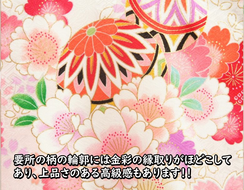 【送料無料】白地の御着物にピンクのぼかし染めが入った清潔感ある可愛らしい女の子のお宮参りの御着物です。 柄域はまりを中心に八重桜や胡蝶蘭、牡丹、梅などの華花が御着物全体を彩る華やか柄域になります。 要所の柄の輪郭には金彩の縁取りがほどこしてあり、上品さのある高級感もあります。 絹生地特有の程よい光沢感のある正絹綸子地紋生地を使用し御着物生地全体にはサヤ地紋が入り質感もしっかりした生地感になります。 お宮参り着物に合わせた長襦袢もセットになっており御着物と長襦袢の前身頃には初めから紐も縫い付けてありますので仕付け糸を解いて頂ければすぐに御使用になれます。 御仕立て直しして頂ければお宮参りだけじゃなく七五三の3歳時のお祝い着として、被布を合わせて着用して頂けます。 御着物を収納する専用の文庫紙(たとう紙)や「寿」の金彩箔文字が入った化粧箱もサービスでお付けいたします。 ※コチラの初着は御色目の特性上、細かな染料飛びがあることが御座いますが着用には問題御座いませんので御安心下さいませ。 ※家紋入れもご希望で承りますので(有料)お気軽にご相談下さい。 納期プラス1週間から10日前後、料金5,800円~商品情報 商品番号 ku-6805330 使用対象 お宮参り 百日参り 百十日参り 七五三など 商品内容 御着物 長襦袢 化粧箱 衣装収納文庫紙(たとう紙) 柄・特徴 まり 八重桜 胡蝶蘭 金彩使い サヤ地紋生地 色目 メインカラー 白×ピンクぼかし 素材 着物 表 絹100% 着物 裏 ポリエステル100% 襦袢 ポリエステル100% 寸法 身丈 約96cm 袖丈 約56cm 裄丈 約45cm ※サイズは特に関係なくお宮参りに御使用になれます。 ご注意 ※専用の袋の中にたたんで収納されているため軽いタタミしわがついている場合がございますのでご了承下さい ※生地の裁断位置により多少柄の出方が変わることがございます ※染め物ですので細かい染料とび(気にならない程度の物)はご了承下さい 白地にピンクのぼかし染めが特徴の可愛らしい女の子のお宮参り着物です!! 要所の柄の輪郭には金彩の縁取りがほどこしてあり、上品さのある高級感もあります!! まりを中心に八重桜や胡蝶蘭、牡丹などの華々が色鮮やかに映え、ピンクのぼかし染めと合わさりお宮参り祝着に最適な華やかな印象も与えてくれています!! 御着物全体に魔除けの意味合いのある紗綾型の文様が織り込まれた地紋生地で比較的生地感もよいです!! 御着物生地は正絹綸子生地特有の程よい光沢感があります!! 御着物と長襦袢の前身頃には初めから紐も縫い付けてありますので仕付け糸を解いて頂ければすぐに御使用できます!! お宮参り初着に併せた長襦袢もセットでお付け致します!! 袖には長襦袢以外に飾り袖(付け袖)も付いています!! 「寿」の金彩箔文字が入った化粧箱にお入れして、専用のタトウ紙も御付け致します!! (デザインは変わることがございます)