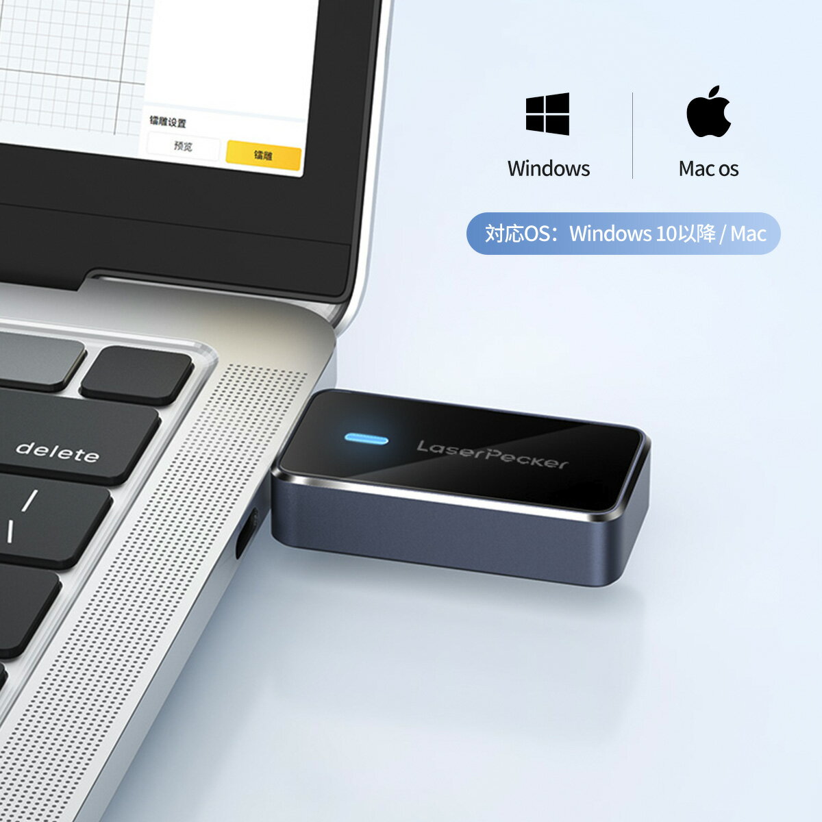 LaserPecker Bluetoothアダプタについて ●【小型サイズ】LaserPecker PC 用 Bluetoothアダプタは小型で軽量で持ち運びが簡単で、手に持ったり、ポケットやハンドバッグに入れたりできます。 ●【使い方は簡単】コンピューターの USB-A ポートに接続し、LaserPecker Design Space PC プログラムを開いてレーザー彫刻機に接続するだけです。 ●【優れた互換性】当社の PC 用 Bluetoothアダプタは、Windows と macOS システムの両方と互換性があります。 ●【互換性】LP2/LP3/LP4 ●【材質】アルミニウム合金とガラス ●【重量】15.75g ●【カラー】グレー ●【使用方法】まずPCでLaserPecker Design Spaceアプリをダウンロードし、アプリのガイドに従ってドライブファイルをダウンロードし、インストールしてから 、Bluetoothアダプタをパソコンに差し込むと使用できます。