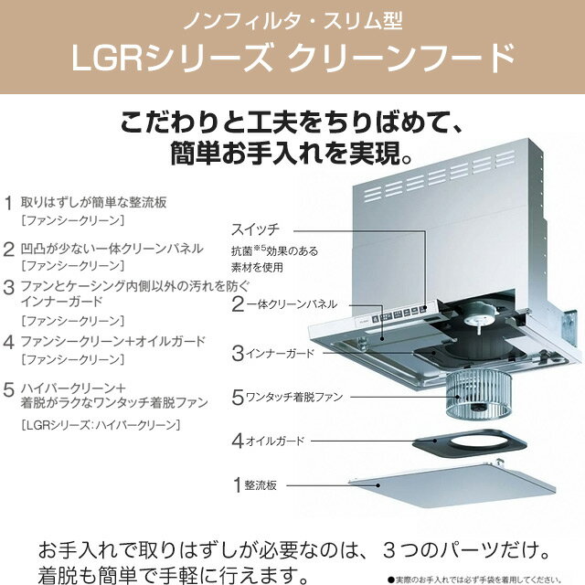 [LGR-3R-AP902-SV] LGRシリーズ クリーンフード リンナイ レンジフード シロッコファン 幅90cm 総高さ44.5~73.5cm コンロ連動 シルバーメタリック 上部スライド前幕板付属 スライド横幕板別売 【送料無料】