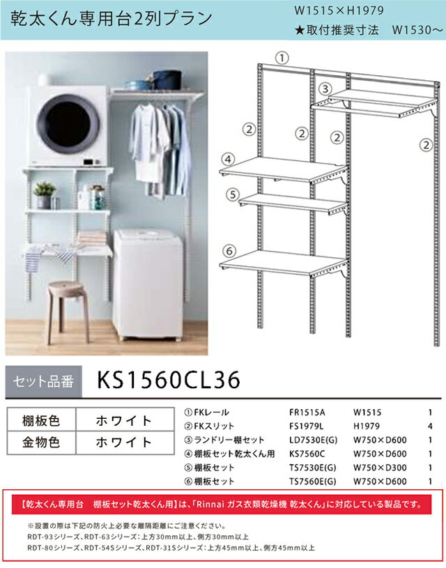 [KS1560CL36] Fitrack フィットラック 乾太くん専用台2列プラン 藤山 ガス衣類乾燥機部材 【お客様組立品】 取付け推奨寸法 W1530mm〜 衣類乾燥機置き台 ※乾太くん本体はついておりません 棚板・金物色:ホワイト 【送料無料】