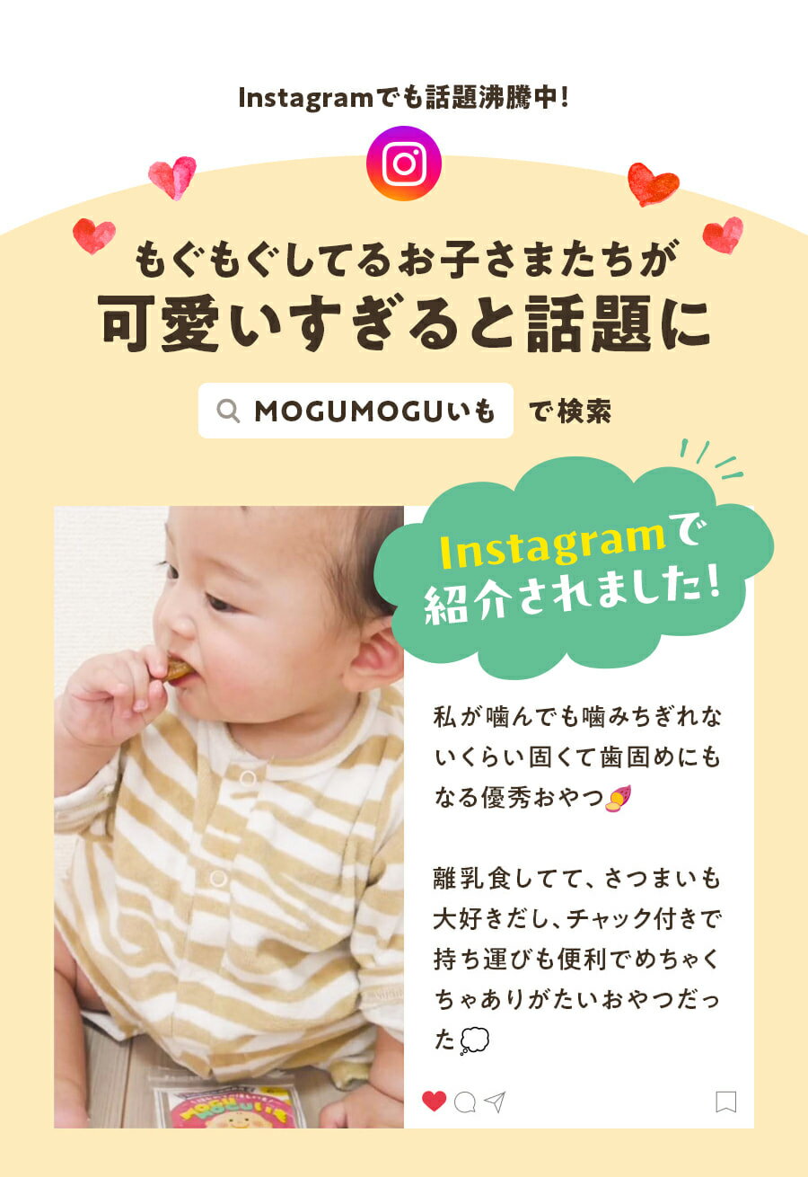 その他の袋数はこちら > 【MOGUMOGUいも】 ・九州産紅はるかのみを使用 ・無添加でさつまいも本来の美味しさ ・少し硬めの干し芋だから子供が噛みきれなくて安心 太陽の光をたくさん浴びて育った《九州産紅はるか》のみを使ったお子様用干し芋です。 余計な甘さや保存料などの添加物は一切使わず、さつまいもだけの美味しさを追求し、職人の手により1枚1枚天日干ししています。 柔らかい干し芋とは違い、わざと少し硬めに作っております。おしゃぶり代わりにもなるよう、お子様が安易に噛みきれない設計にしており、安心して食べさせていただけます。 しゃぶることで歯固めにもなり、長く味わえるので多くおやつを与えることなくお母様にも嬉しい干し芋です。 せんべいやクッキーのようにボロボロならず汚しにいので、お出かけ先や長距離移動にも最適です。 こどもはもちろん、大人の方が召し上がっても美味しい干し芋です。ぜひ一度食べてみてください。 ※旧パッケージが届く場合があります。あらかじめご了承ください。 ※賞味期限は5カ月以上あるものをお送りいたします。