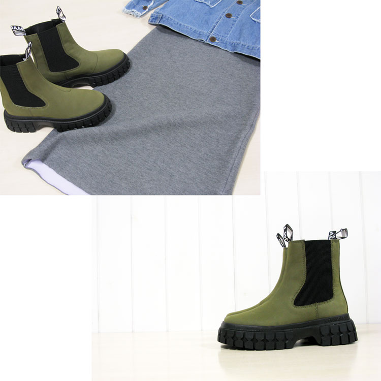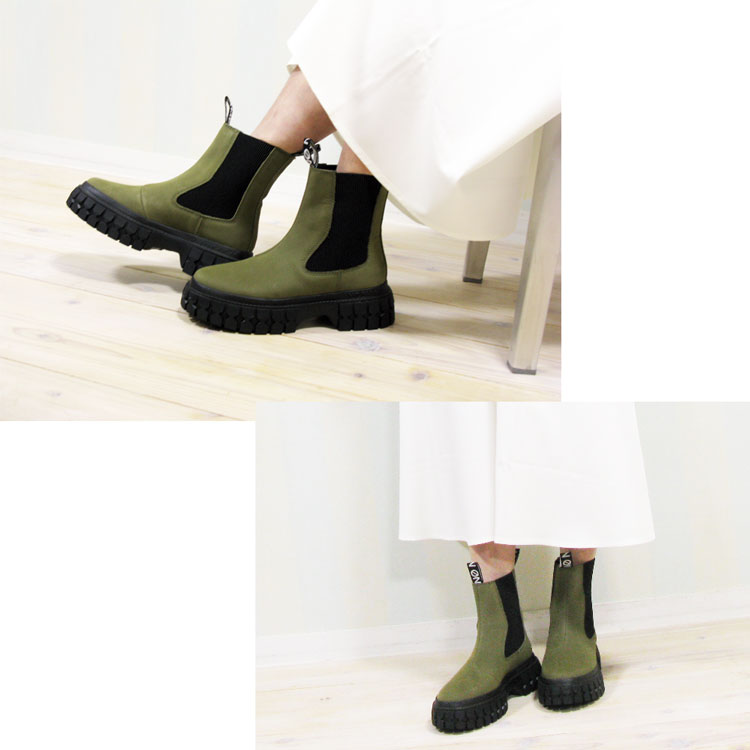 メーカー希望小売価格はメーカー商品タグに基づいて掲載していますトレンドのミドル丈サドゴアチェルシーブーツです 上品で滑らかな牛革ヌバックが合わせ易いカーキカラーで登場 ミドル丈はパンツにもスカートにも合わせられ 脱ぎ履きもし易いのでとってもコーデしやすいです ボリュームのある軽量ラギットソールもトレンドっぽく可愛い クッション性インソールも足に馴染みます 美脚効果もありカジュアルもキレイ目もできるブーツです (天然革・手作りのため多少のムラやシワ・キズがございますが、生産上避けられない状態ですのでご理解くださいませ) (size) 36(23.0cm) 37(23.5cm) 38(24.0cm) 39(24.5cm) 40(25.0cm) ヒール…約5cm (素材) カウレザー (Price) 税込 41,800円 (38,000円+税)