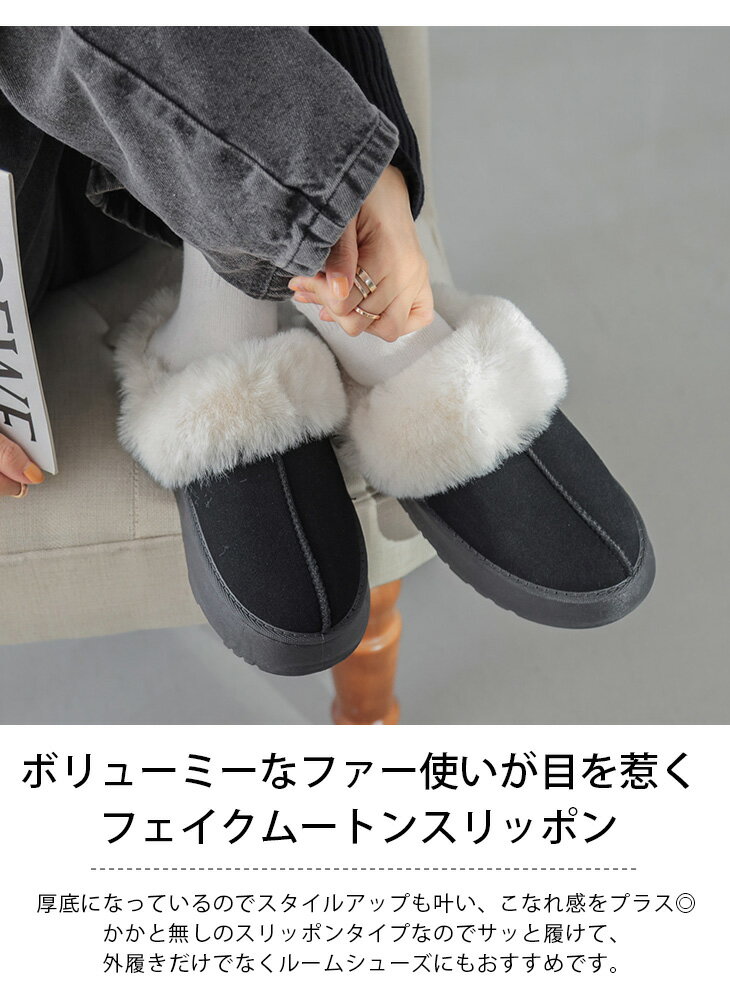 【半額クーポン対象】エコファームートンサンダル 厚底 暖か 美脚 スリッポン ルームシューズ 可愛い 冷え対策 人気 プチプラ 韓国ファッション 2025秋冬新作【ash409-075】【即納:1-5営業日】【送料無料】80込