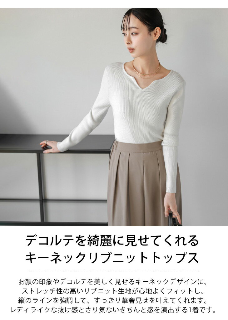 【25AW×半額クーポン】キーネック リブニット 長袖 ストレッチ シンプル ロングシーズン トップス レディース おすすめ おしゃれ フリーサイズ 2025秋冬新作 【lstpss25-1014】【即納:1-5営業日】【送料無料】メ込2