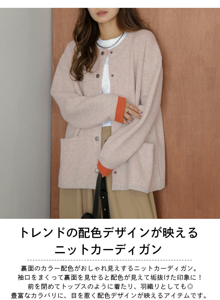 【半額クーポン対象】カーディガン ニット 配色デザイン バイカラー オーバーシルエット トレンド 抜け感 羽織り トップス レディース 秋冬新作【lsotaw25-1674】【予約販売:(1)11月27日/(2)12月4日入荷予定順次発送】【送料無料】宅込