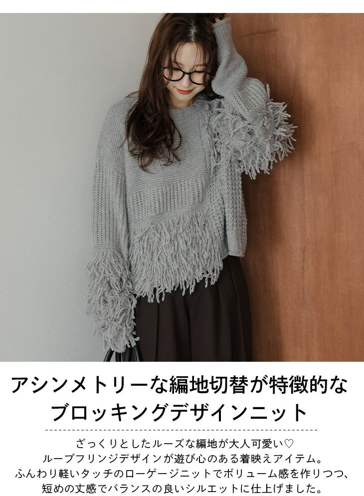 【半額クーポン対象】ニット プルオーバー アシンメトリー フリンジ デザインニット ルーズ レディース 大人かわいい フェミニン おすすめ おしゃれ フリーサイズ 2025秋冬新作【lstpaw25-1766】【予約販売:11月20日入荷予定順次発送】【送料無料】宅込