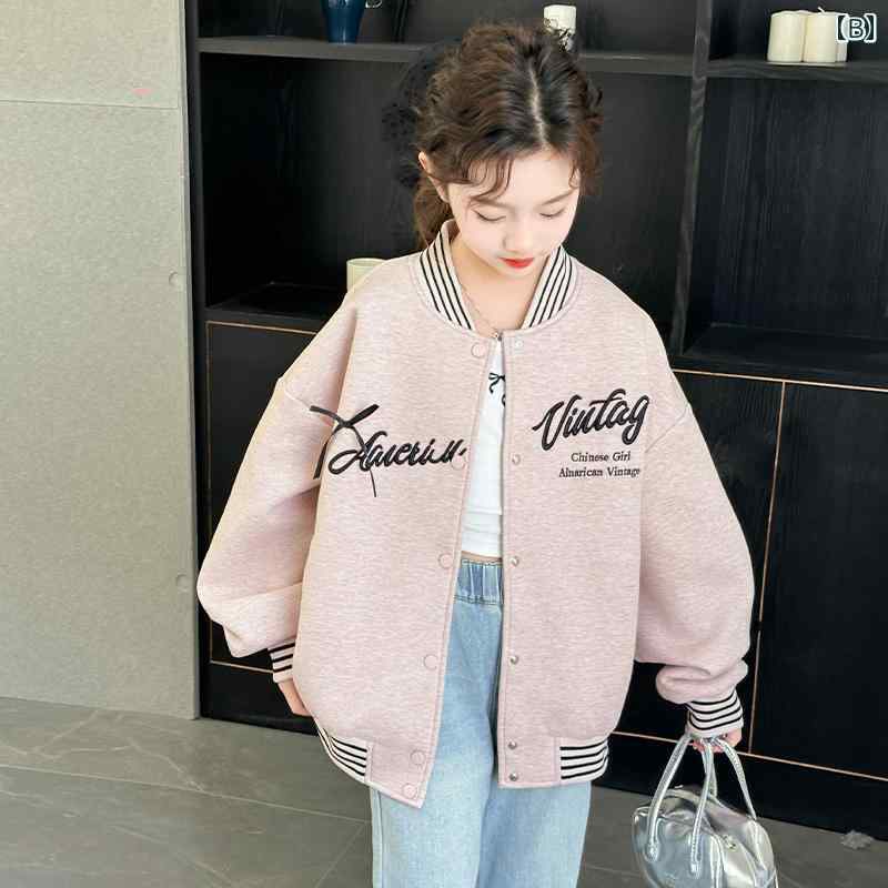 女の子用 ベースボールジャケット ジャンバー 春秋 子供用 韓国 トップス キッズ 女の子用 春 ジャケット 小学生 中学生 ガーリー キュート おしゃれ カジュアル 通学 デイリー