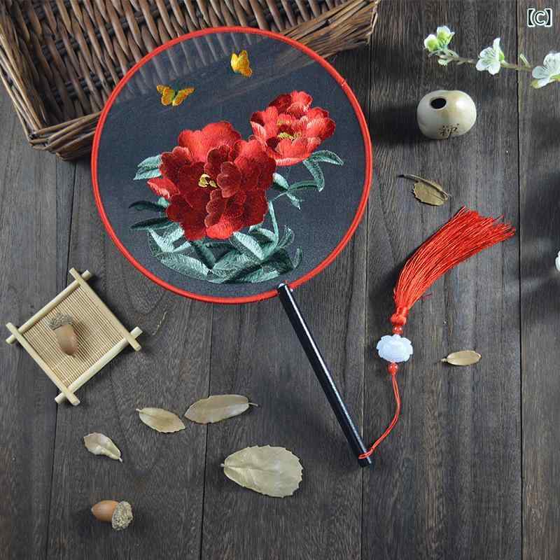 扇子 子供用 円形 古風 両面刺繍 蘇州刺繍 絹製 花柄 団扇 舞踊 漢服 チャイナドレス 古典舞踊 インテリア 撮影小物 イベント コスプレ 和装小物 レトロ調