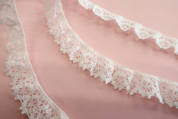 【メール便送料無料】フリルレース 在庫処分 10m巻き 13mm幅 オフホワイト ストレッチレース トーションレース 手芸 縁取り 装飾 日本製 DS.765s10