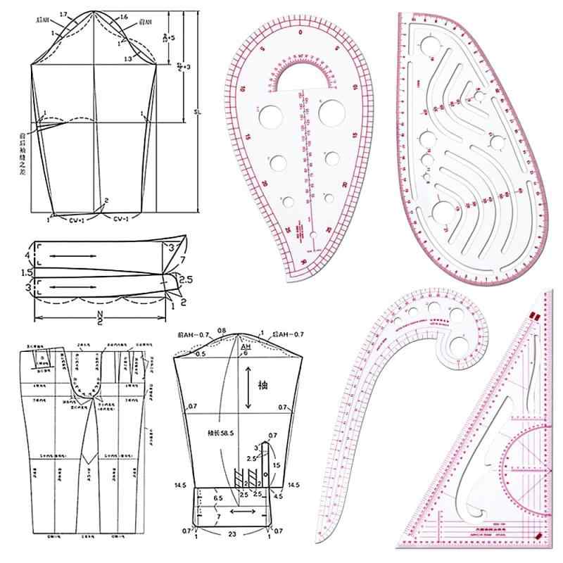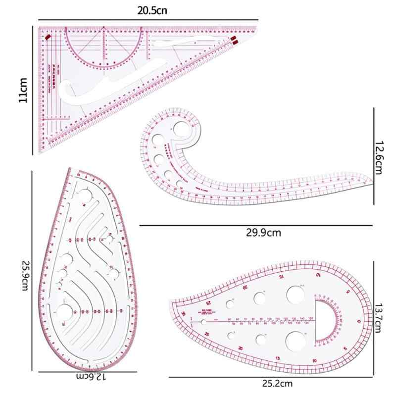 YFFSFDC カーブ定規 縫製定規 4枚セット 曲線ルーラー プラスチック カーブルーラー 雲形定規 三角定規 カーブ定規 裁縫用 定規 ルーラー フレンチカーブ 服装ルーラーツール メジャーテープ