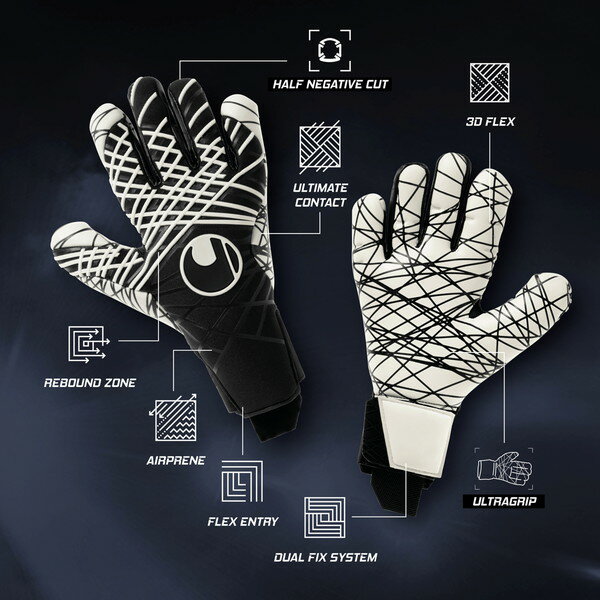 【最大2000円割引クーポン!枚数限定12/6 09:59まで】uhlsport ウールシュポルト ナイトエディション ウルトラグリップ ハーフネガティブ サッカー キーパー手袋 101132802-24