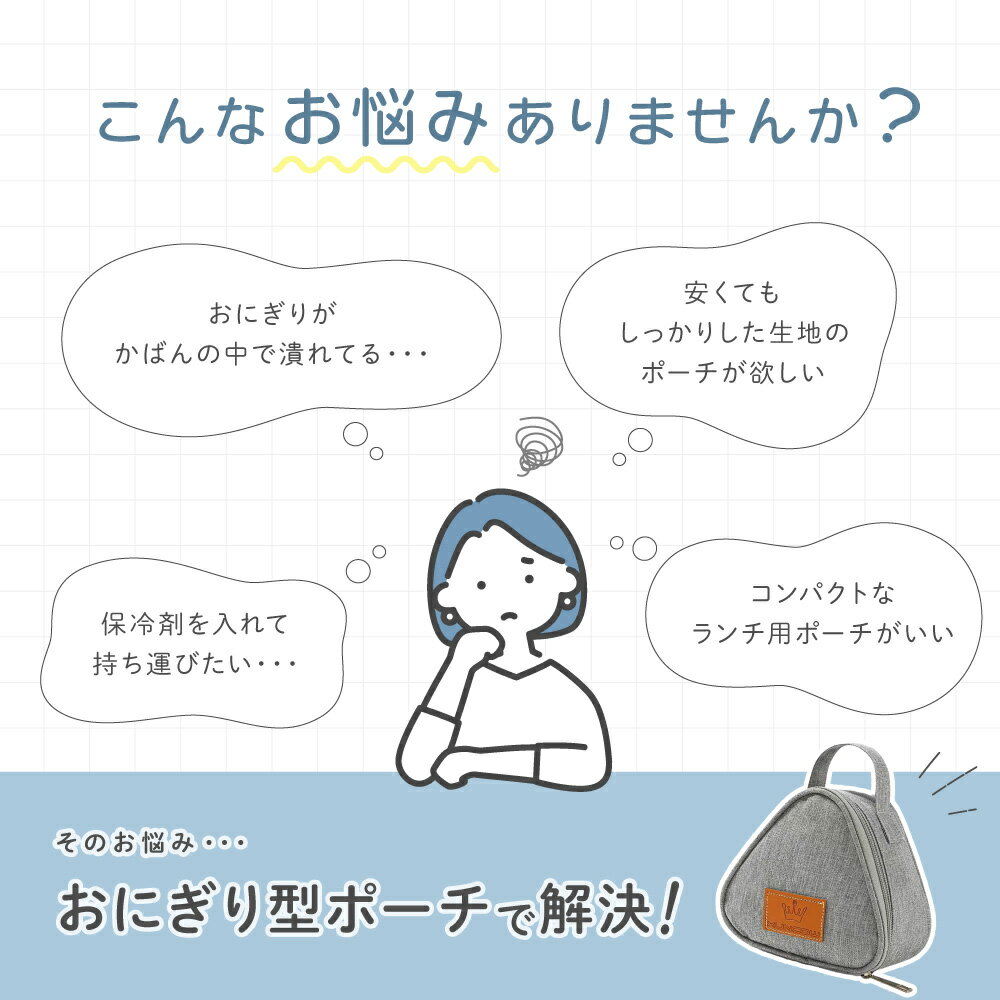 送料無料 おにぎりケース おにぎりポーチ バッグ 鞄 キッチン用品 弁当袋 お弁当グッズ ランチバッグ 三角 おにぎり型 ロゴ 持ち手付き ファスナー 無地 単色 シンプル カジュアル 保温 保冷 防水 携帯用 持ち運び