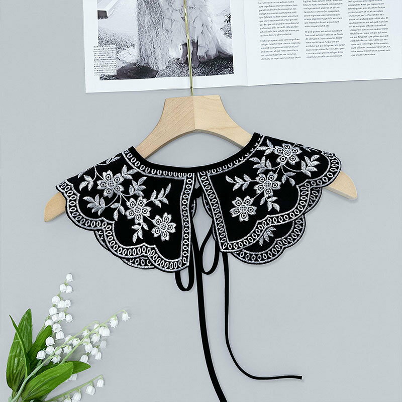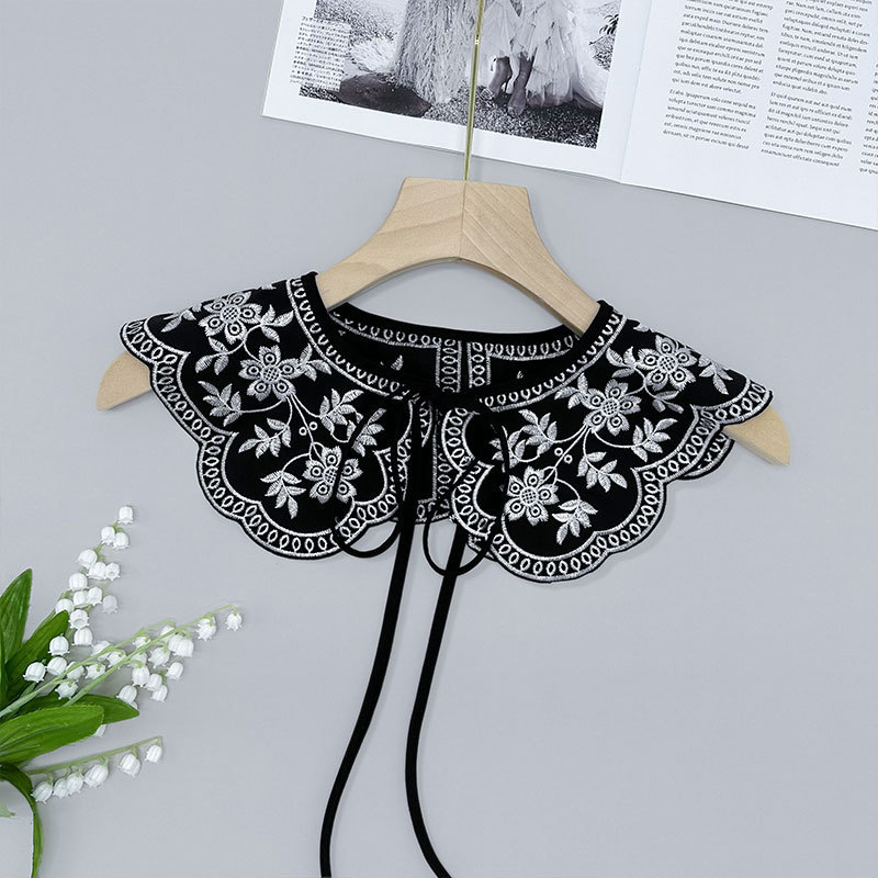 送料無料 つけ襟 付け襟 子供 キッズ 女の子 フェイクカラー レイヤード風 重ね着風 刺繍 花柄 お洒落 かわいい ブラック ホワイト ファッション小物