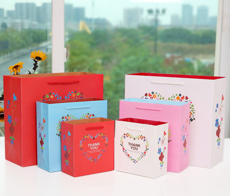 送料無料 ギフトバッグ 5枚セット 紙袋 ラッピングバッグ 手提げ袋 プレゼント 贈り物 花柄 フラワー ロゴ thank you 可愛い おしゃれ 誕生日 記念日 お礼 ラッピング用品