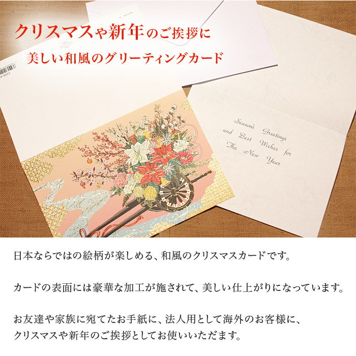 クリスマスカード 和風 「春の花車Xmas」 (5枚セット) 和風クリスマスカード 封筒付き 年賀状 お正月 日本 海外向け グリーティングカード 和柄 おしゃれ 可愛い