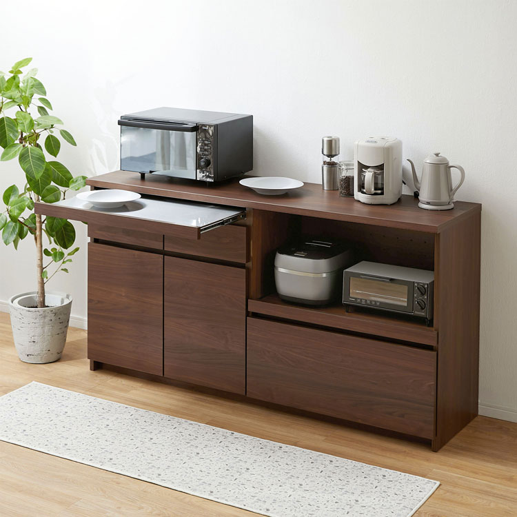 キッチンカウンター キッチンラック 食器棚 キッチンボード キッチン収納 キッチン カウンター 160cm 電子レンジ台 作業台 収納 棚 スライド おしゃれ 開梱設置無料 完成品