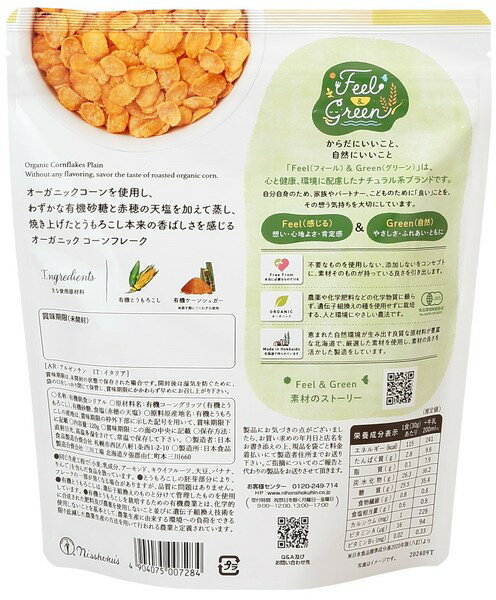 🎁 リピーター様限定企画 🎁 毎月11日~20日「ルーレット抽選会」開催! 店内で3,000円以上ご購入いただいたお客様の中から 抽選で 3名様に選べる賞品 が当たります🎯 👉 詳細はこちら https://www.rakuten.co.jp/lalacosme/contents/lalacosme/ 「からだにやさしい朝、はじめよう。」 — Feel & Green やさしいコーンフレーク 「Feel & Green やさしいコーンフレーク プレーン」は、 オーガニックコーンの自然な甘みと香ばしさをそのまま生かした、 砂糖不使用・無添加のナチュラルシリアルです。 余計なものを加えず、素材そのままの味わいと食感を大切に。 朝食はもちろん、ヨーグルトやサラダのトッピングにもぴったり。 植物性原料100%で、グルテンフリー・低GI・ヘルシー志向の方にもおすすめ。 体にも環境にもやさしい、毎日続けられる自然派コーンフレークです。