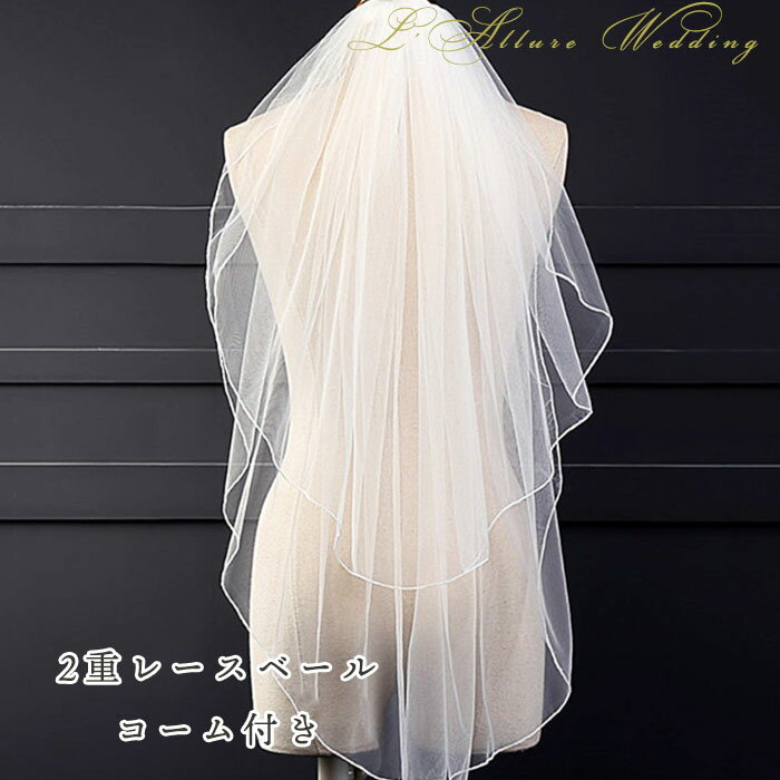 ウェディング ブライダル ヴェール 結婚式 ベール ブライダルベール 花嫁 挙式 二次 パーティーベール お色直し 舞台 発表会 演出 海外挙式 2重レース コーム付き 持ち込み ホワイト ややロング ロング