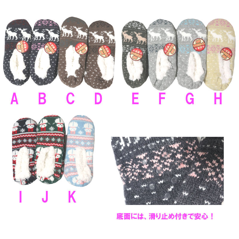 +注意事項+ ●色は 素材拡大画像が近いですが、PCの環境等により 若干の誤差がある場合がございます。複数枚、同一カラーが入る場合がございます。 ●実寸サイズは平置きサイズの為、採寸により多少の誤差が出る場合がございます。 ●素材は 機械による生産過程において、若干の他糸混入や 生地を織る際の糸の継ぎ目 若干のホツレ ミシン糸残り 等が生じている場合がございますが、品質上の問題ではございません。 ●ご購入前に、会社概要ページをご一読下さい。 ★楽天ランキング1位獲得! ★ショーツ福袋 ★ショーツ単品 ★サニタリーショーツ ★ソックス ★ブラジャー&ブラショー ★フットカバー ★ショーツまとめ売り素材感 包装時の厚みを減らす為、パッケージの紙を取り除いての発送になります。 ☆裏ボア ルームソックス 23-25cm☆セールおうちでポカポカ暖か!ふわふわソフトタッチソックス☆!ルームソックスとして最適です♪ 暖か素材使用!ほっこりキュートデザイン! サイズ表記 23-25cm 素材 ポリエステル 詳細 内側ボアでふわふわ、滑り止め付きで、家事もはかどる! Staff Comment おうちでポカポカ暖か!ふわふわソフトタッチソックス☆! Coordinate ルームソックスとして最適です♪他商品との同梱は不可能です。 包装時の厚みを減らす為、パッケージの紙を取り除いたり、圧縮して包装したりする場合がございます。