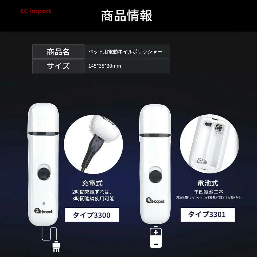 商品詳細: 【製品名】 ペット用電動ネイルポリッシャー 【サイズ】 145*35*30mm