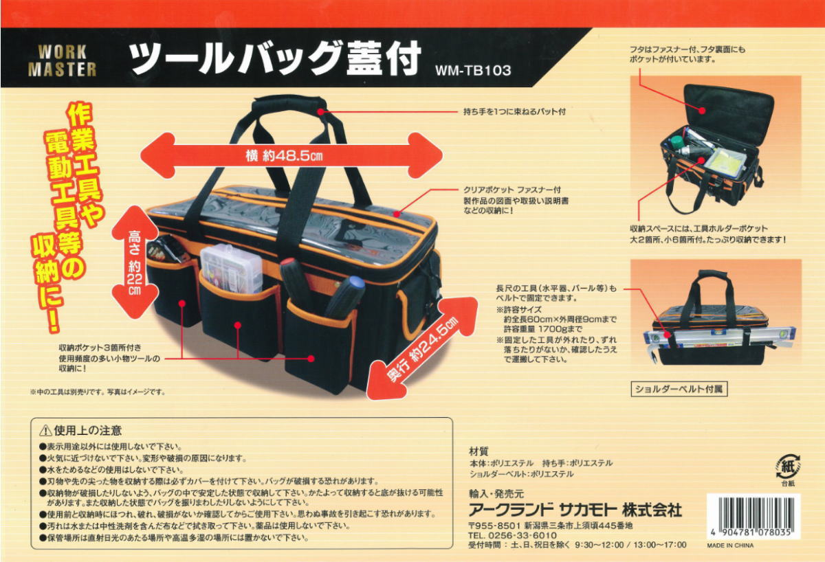 【12月は毎日開催!エントリーで最大100%ポイントバック】ワークマスター ツールバッグ蓋付 WM-TB103 アークランズ