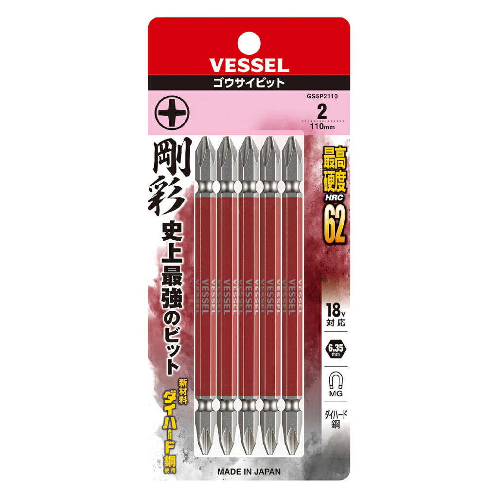 VESSEL ベッセル 両頭剛彩ビット+2X110mm5本組 GS5P2110