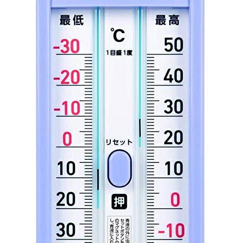仕様 用途:各種温度管理の際に 現在温度測定範囲(約):-30~50度 最高温度測定範囲(約):0~50度 最低温度測定範囲(約):-30~50度(最低温度) 付属品:マグネット(※虫を移動するために使用) 精度:±2度(-20~50度)、±4度(-20~50度以外) 1目盛:1度 フック穴付き 製品サイズ(mm) 220×65×23 製品重量(g) 120 商品説明 最高温度、最低温度の確認と現在温度の測定ができます。 環境にやさしい感音液を使用しています。 ワンタッチで最高、最低温度がリセットできます。 -30から50度まで測定可能です。 ※品質向上のため予告なく仕様を変更する場合がございます。パッケージのリニューアル等につき、商品画像が異なる場合がございます。商品画像の色合いは、画像処理上、若干異なる場合がございます。