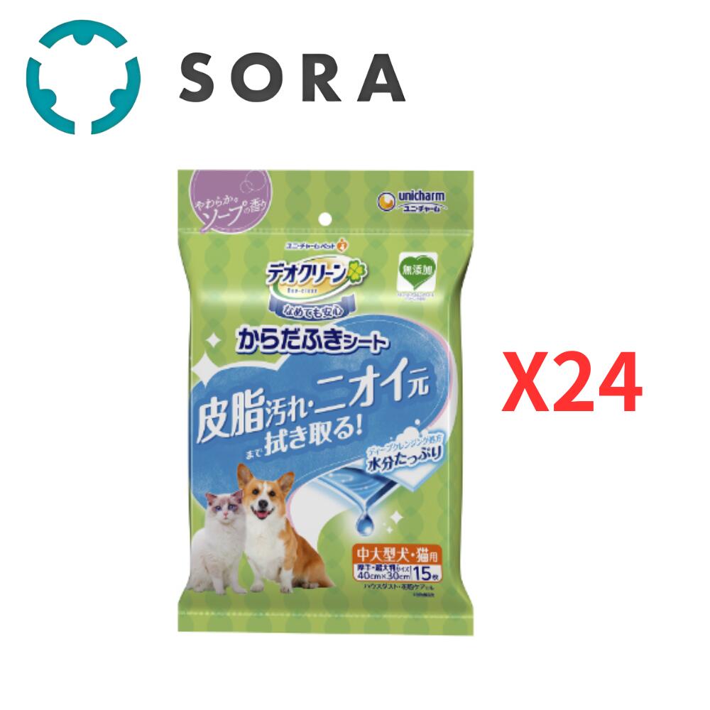 【12月は毎日開催!エントリーで最大100%ポイントバック】ユニ・チャーム デオクリーン ノンアルコール除菌 ペット用ウェットティシュ 厚手 つめかえ用 (60枚×3)×8袋 ケース販売