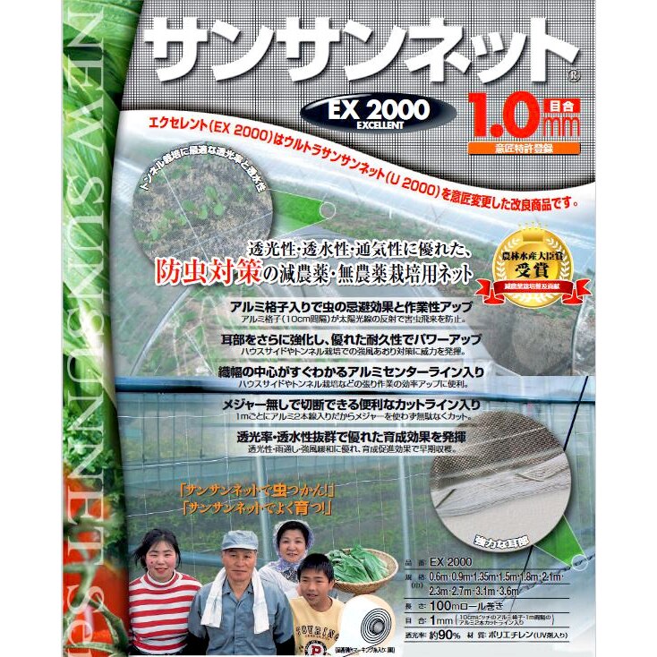 【12月は毎日開催!エントリーで最大100%ポイントバック】日本ワイドクロス 防虫ネット サンサンネット 0.9m×100m EX2000 【メーカー直送・代引不可・置配不可】