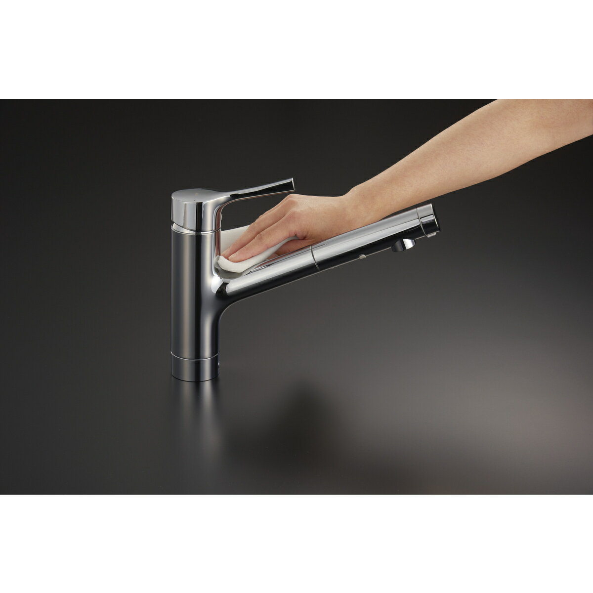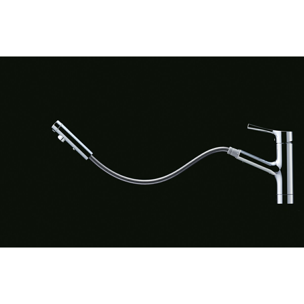 仕様 本体重量:2015g 使用環境温度:1℃~40℃ 取付:1穴台付 取付穴:φ37mm シャワーホース引き出し長さ:450mm 台上高さ(吐水時):250mm 取付穴中心より前出:247mm パーツ:メタルハンドル、SUSフレキホース 吐水切替:先端回転 性能:節水C1、節湯B 商品説明 ハンドシャワー仕様のシングル混合栓です。 整流&ミクロソフト吐水で、食器などに当たった水が飛び散りにくくなりました。 お手入れカンタン、すっきりデザイン。 ※注意:寒冷地などの凍結が予想される地域にお住まいの方は、寒冷地用(TKS05305ZA)をお買い求めください。 ※品質向上のため予告なく仕様を変更する場合がございます。パッケージのリニューアル等につき、商品画像が異なる場合がございます。商品画像の色合いは、画像処理上、若干異なる場合がございます。