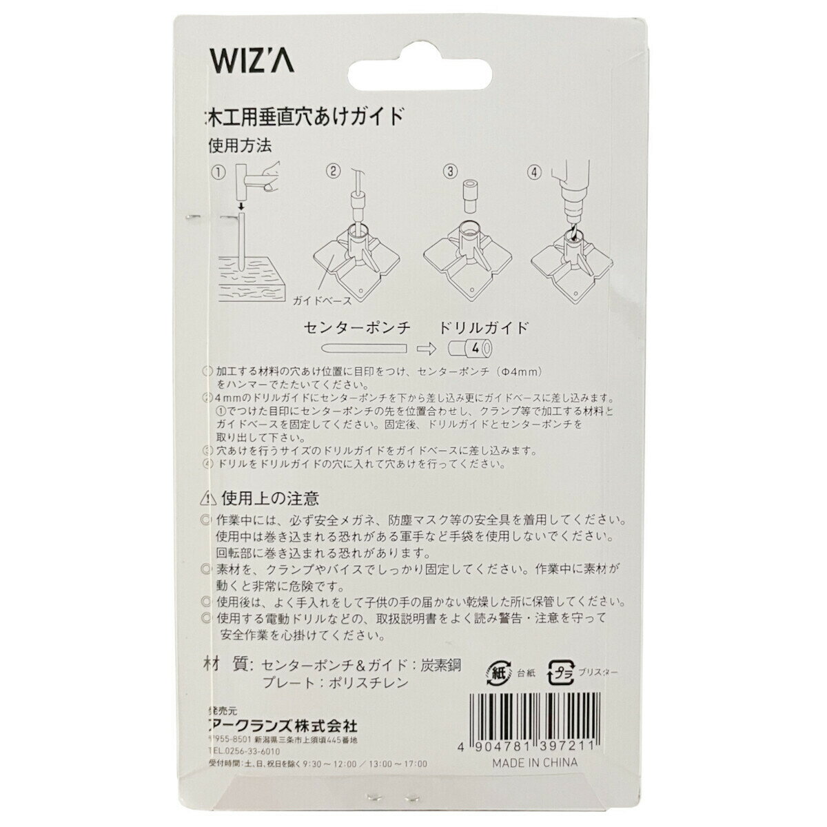 ウイザ WIZA 木工用垂直穴あけガイド 4/5/6/8/10/12mm WZ-SAG6 アークランズ