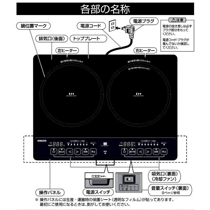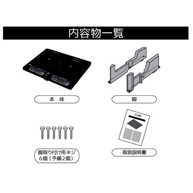 山善 IHクッキングヒーター 2口 脚付き YES-WL1456 B