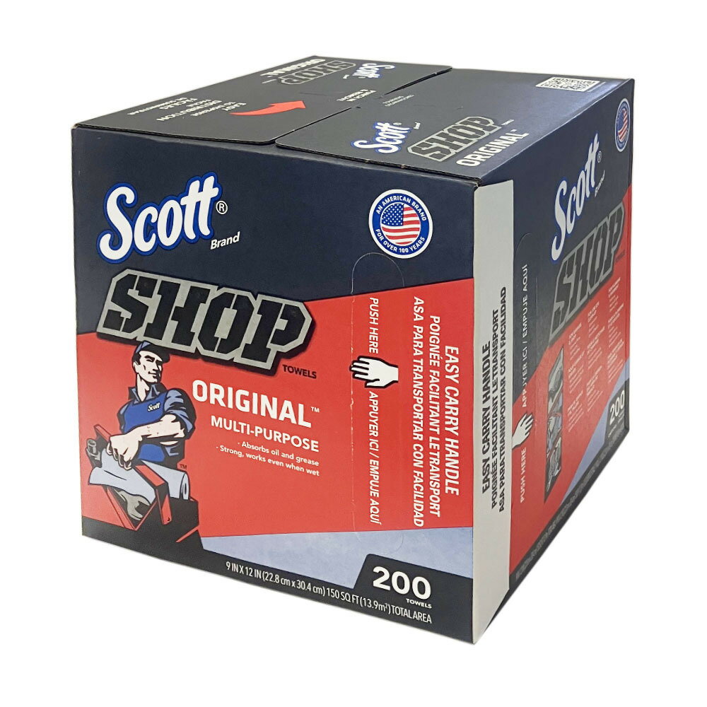 スコット ショップタオル ブルーBOX 200カット 紙ウエス ×8個 ケース販売